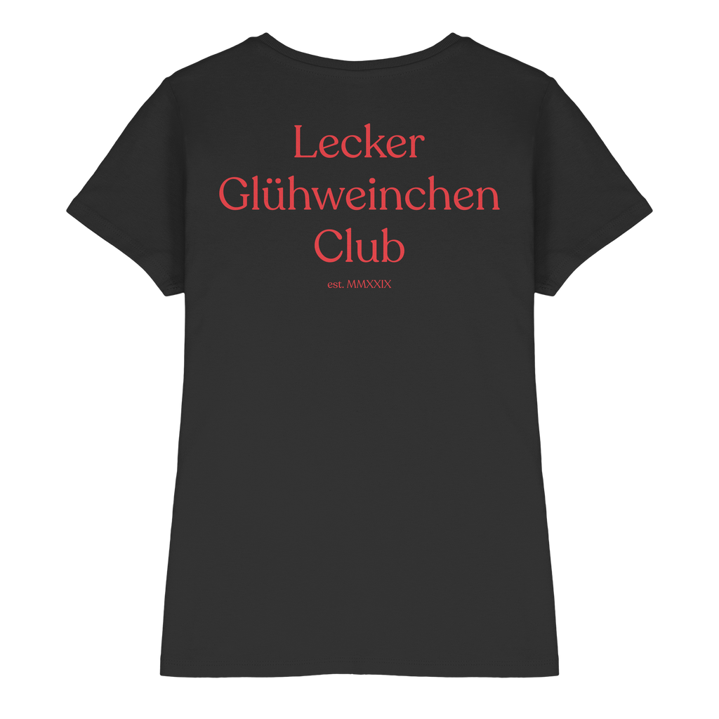 Dieses Damen T-Shirt mit dem Spruch „Lecker Glühweinchen Club – est. MMXXIX“ ist das Must-have für jede Winterliebhaberin. Egal ob Weihnachtsmarkt, Hüttengaudi oder Glühwein-Date – mit diesem Shirt zeigst du deine Liebe zum heißen Rebensaft auf charmante Art.